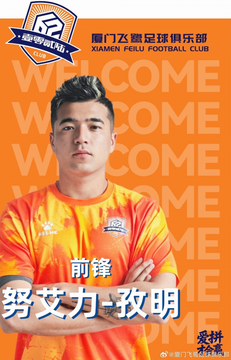 经俱乐部与球员本人友好协商并达成一致,现正式宣布,努艾力·孜明加盟厦门飞鹭足球俱乐部,新赛季将代表球队征战各项赛事。