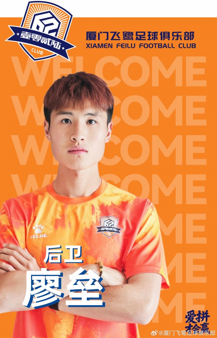 欢迎廖垒加盟厦门飞鹭足球俱乐部,期待他镇守防线、全力以赴,助力球队稳步前行。
